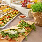 Eles servem um pequeno-almoço continental todas as manhãs. O restaurante à la carte restaurant oferece uma seleção de delícias da cozinha Italiaanse. O restaurante a pizzaria Mister Pizza Ghetto Turco fica a 650 metros de distância.