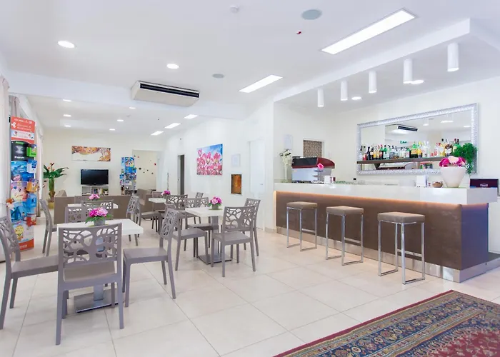 O hotel está situado a cerca de 5 km do aeroporto Internacional Federico Fellini e a 10 minutos de carro dos locais culturais como o Arco de Augusto. A Roda Gigante de Rimini fica à 4.6 km do Hotel Reyt. A praia privada está situada a um curto caminho deste alojamento de 3 estrelas, enquanto o Parque de Diversões Fiabilandia está a 19 minutos de distância a pé. As famílias que viajam para Rimini irão gostar de estar a 4.5 km de Rimini Dolphinarium. A paragem Portofino está localizada a 10 minutos de distância a pé.